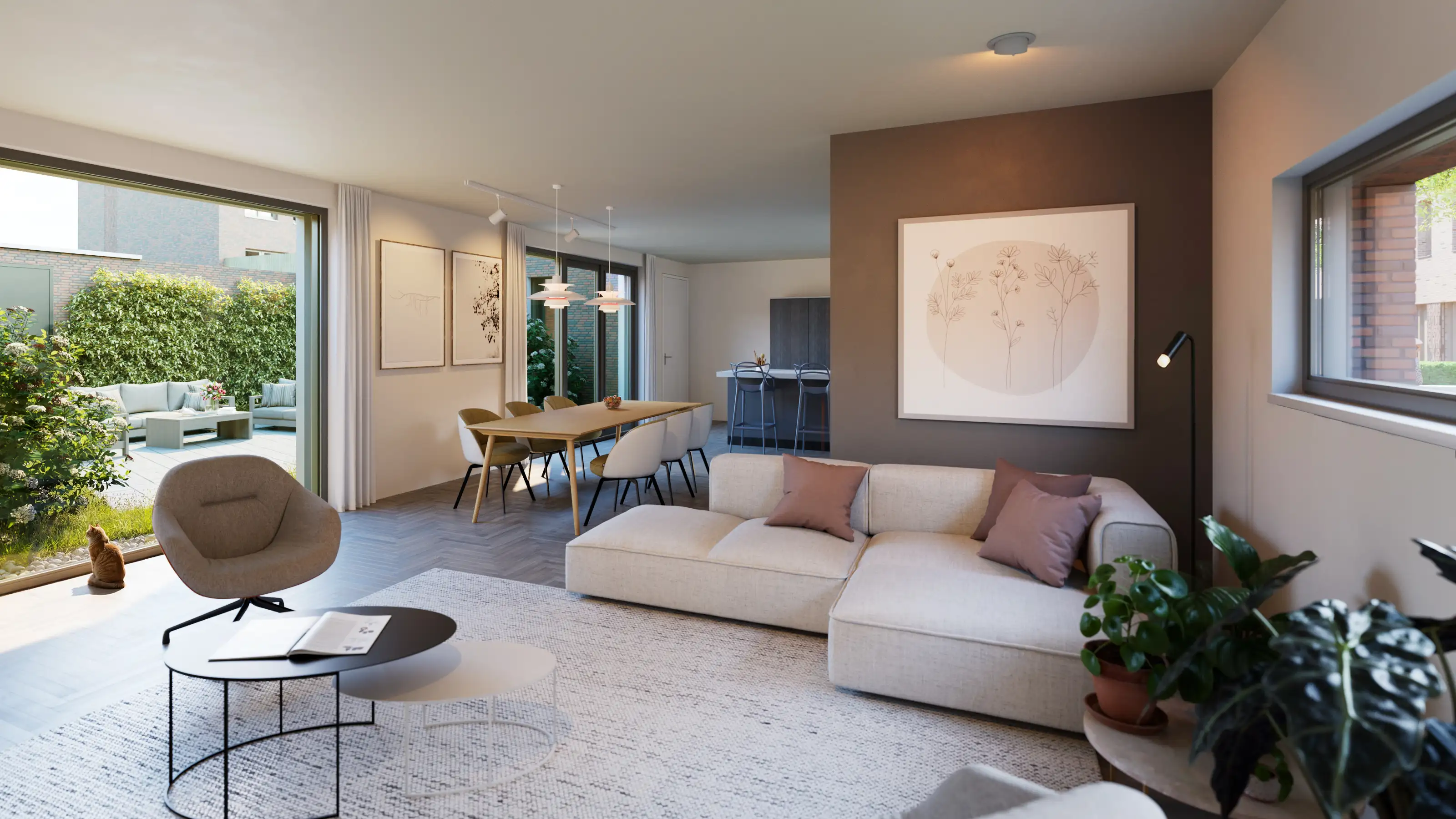 Een 3D interieur visualisatie is een digitale, fotorealistische weergave van een ruimte. Het maakt het mogelijk om een interieurontwerp te ervaren voordat het wordt gerealiseerd, ideaal voor presentaties, verkoop of besluitvorming.