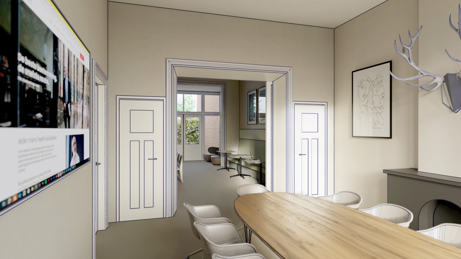3D visualisatie | Schetsmatige beelden van de inrichting van een kantoor | ‘s-Hertogenbosch